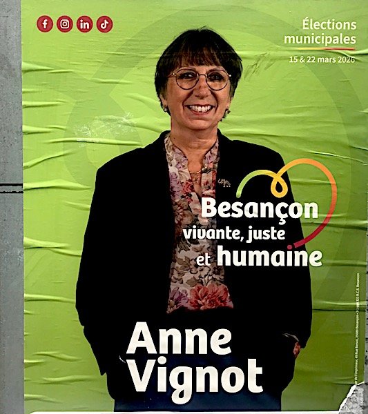 Même si les premiers pas dans le militantisme d’Anne Vignot sont hésitants, surtout son premier tractage : « ça fait bizarre de proposer un tract avec sa tête dessus… ». Mais elle fait le « grand saut » et son « aventure politique » se poursuit avec un poste d’adjointe en 2014 « à la transition écologique, à l’énergie et aux espaces verts » du maire de Besançon Jean-Louis Fousseret, jusqu’à ce qu’il fasse allégeance à Emmanuel Macron, ce qui créé quelques dissensions (le moins que l’on puisse écrire) au sein de la majorité élue derrière son nom. Et ce qui amène Anne Vignot à un autre projet « écologiste mais qui n’exclut pas d’autres sensibilités de gauche ». Et à être élue maire (première femme élevée à cette fonction de l’histoire de Besançon) aux élections municipales de 2020.