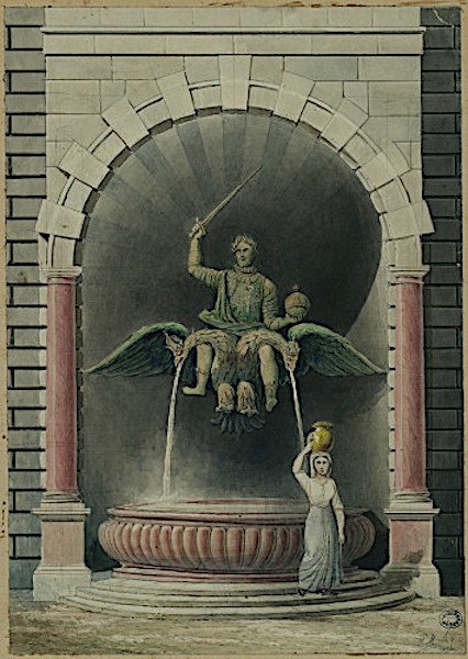 Charles Quint autrefois statufié au sommet de la fontaine de l’hôtel de ville. L’inénarrable Allenbach réclame le retour de cette statue. Le nouveau maire, Ludovic Fagaut, n’a pas dit non… © Mémoire Vive/Ville de Besançon.