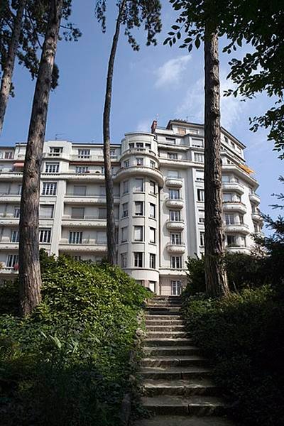 Avant cette commande, les deux frérots ont déjà planté, au long des années 1920 et à Dijon, une petite dizaine de bâtiments Art déco. Mais aucun (en toute objectivité) de cette envergure : ici, sur un plan en U s’articulent pas moins de sept corps d’immeubles. Et comme à l’habitude de ces deux architectes, ils relèvent tous du pur Art déco : du béton (peint en blanc dans les étages, en beige au rez-de chaussée : soin du détail), des grilles en fer forgé, des balcons qui tournent rond et qui, comme les tourelles, rompent la rigoureuse géométrie des étages. Et puisque, en 1948 quand les travaux interrompus, vous imaginez pourquoi, s’achèvent et qu’il faut vivre avec son temps, l’ample cour intérieure est prévue pour accueillir quelques automobiles et des ascenseurs grimpent vers les étages.
