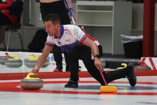 Au lancer, Wilfrid Coulot, champion local. © Besançon Curling Club