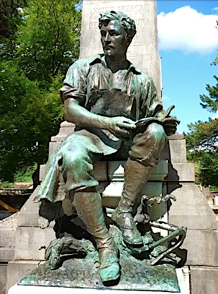 La pause-pose du vigneron sur un monument dédié à un député fouriériste. © D.R.