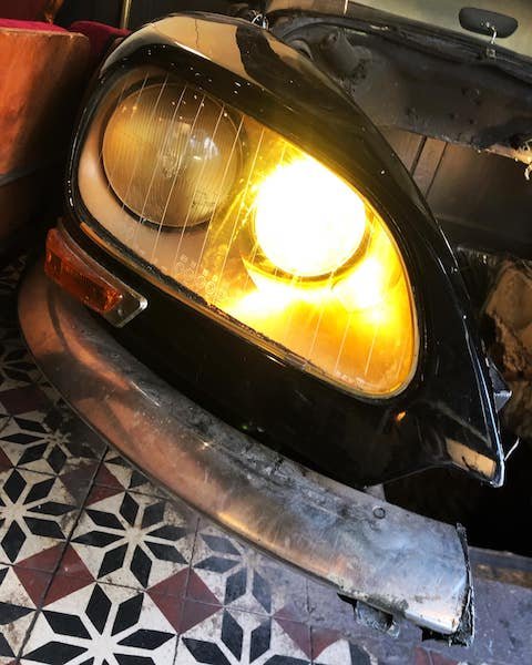 Val et Titi n’étaient pas les premiers à organiser ici des concerts : la cave du lieu qui, à l’époque, s’appelait le Gainsbar puis avant ou après La Souris Déglinguée (on a une mémoire qui s’emmêle parfois un peu les pinceaux) en programmait déjà. Mais l’idée du capot pour offrir l’accès à cette cave, ce sont eux. Une D.S., un peu beaucoup épave, découpée à la disqueuse en famille, avec Stéphane, le petit frangin de Titi.