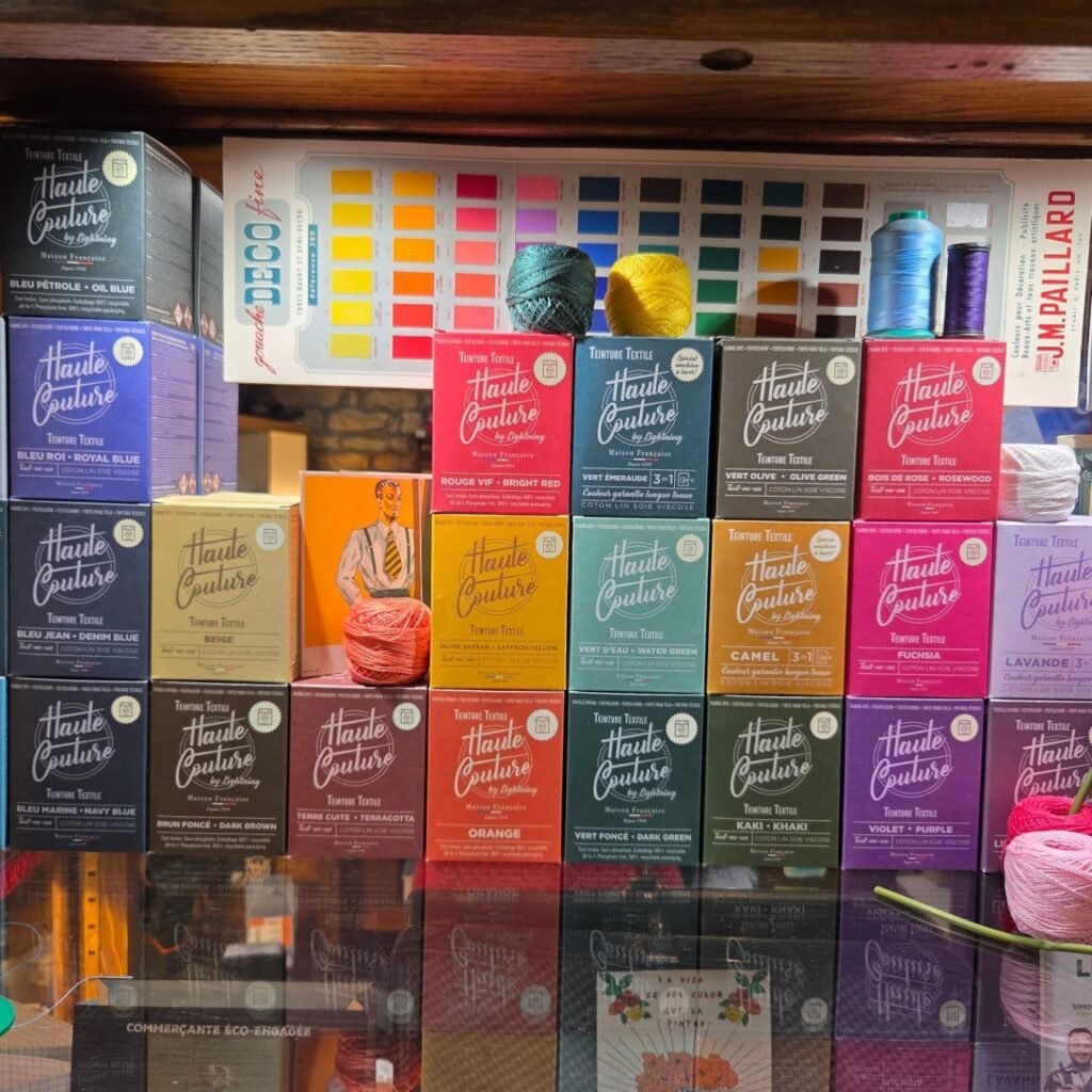 Le seul endroit du centre-ville où trouver un aussi large choix de teintures pour tissus. ©Au Bazar de Fanny.