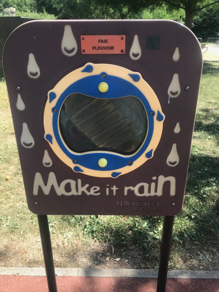 Pour être, one more time, tout à fait franc, nous n’avons toujours pas entièrement compris à quoi pouvaient servir certains jeux mais ça doit être parce qu’on a du abandonner en chemin une bonne partie de notre âme d’enfant. Parce que les bambinis de cette rubrique s’y sont vraiment éclatés. En revanche, on sait que les jeux plantés dans cette immense aire ont été acheminés depuis les Midlands, contrée pas nécessairement la plus touristique d’Angleterre, mais où l’entreprise Wicksteed fabrique ce genre de trucs depuis plus d’un siècle. L’occasion donc, pour vos charmants bambins d’apprendre, également, quelques bribes d’anglais. Ce que l’on a appris aussi, pendant que les mômes essayaient (entre autres) de faire tomber la pluie, c’est que les cheminements de pavés de béton ont (et ouais !) reçu en 2013 un prix de la part d’un organisme dont ni toi (à moins que tu ne bosses dans le B.T.P. et encore…) ni moi n’ont jamais entendu parler : le syndicat national du béton prêt à l’emploi !